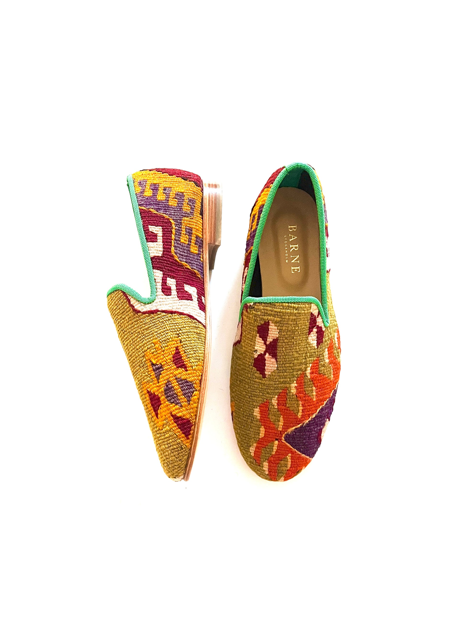 Each Barne slipper is unique and handmade from repurposed Kilim rugs.