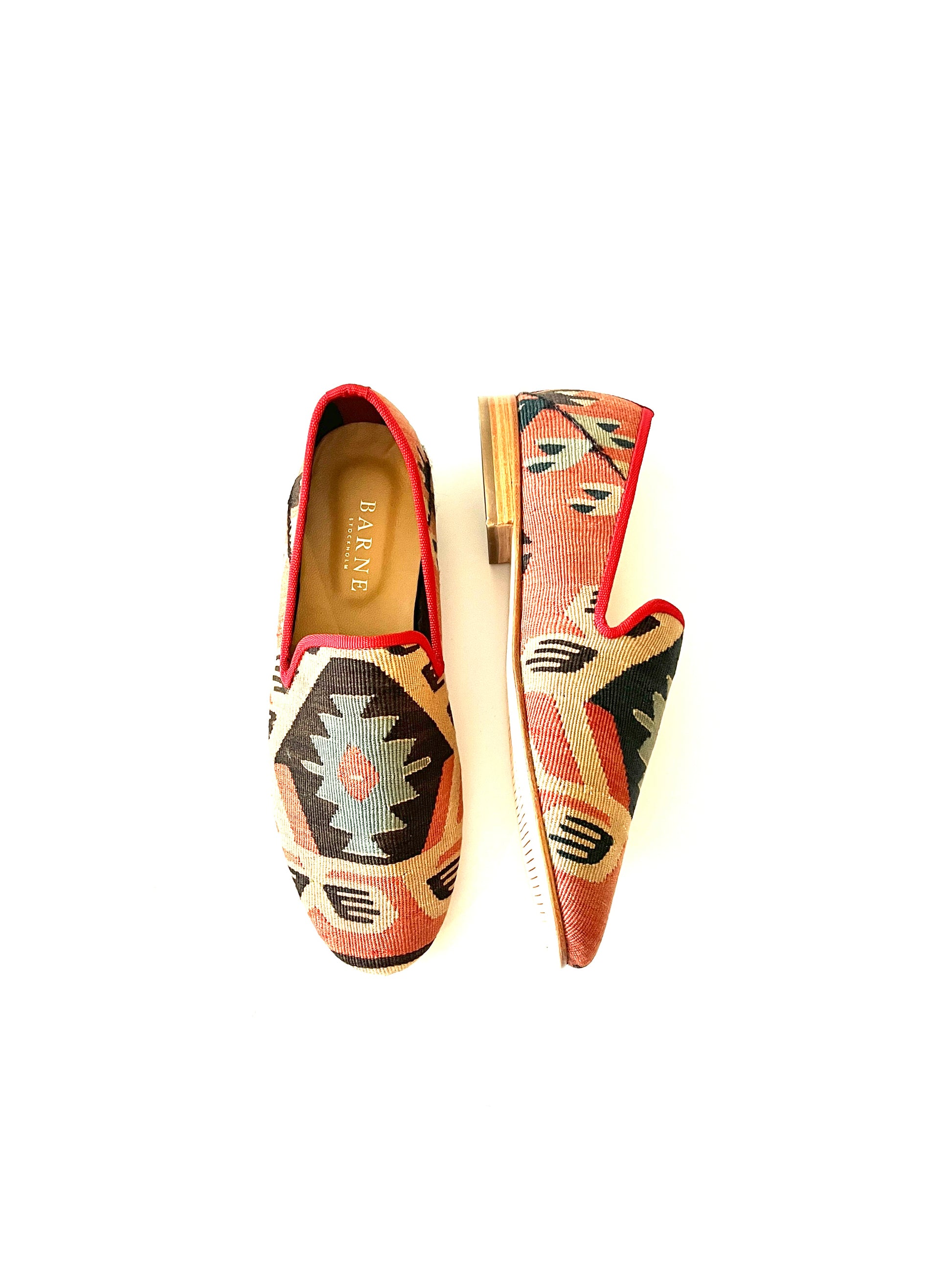 Each Barne slipper is unique and handmade from repurposed Kilim rugs.