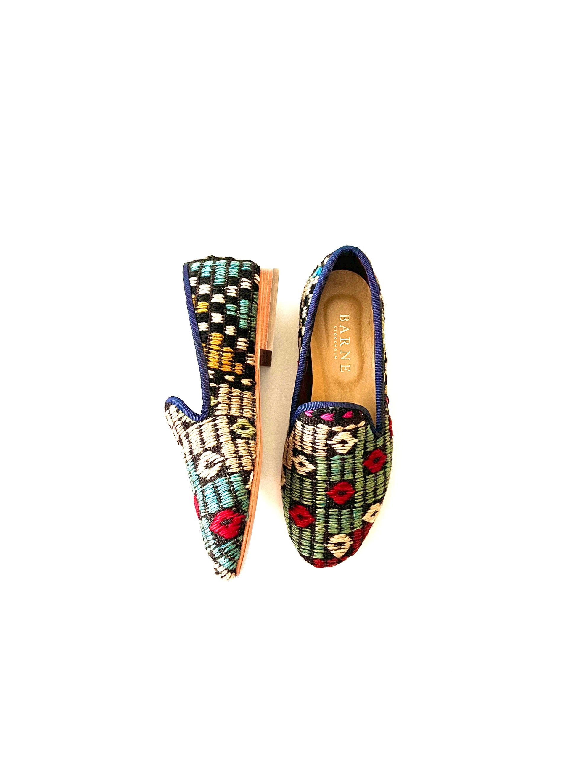 Each Barne slipper is unique and handmade from repurposed Kilim rugs.